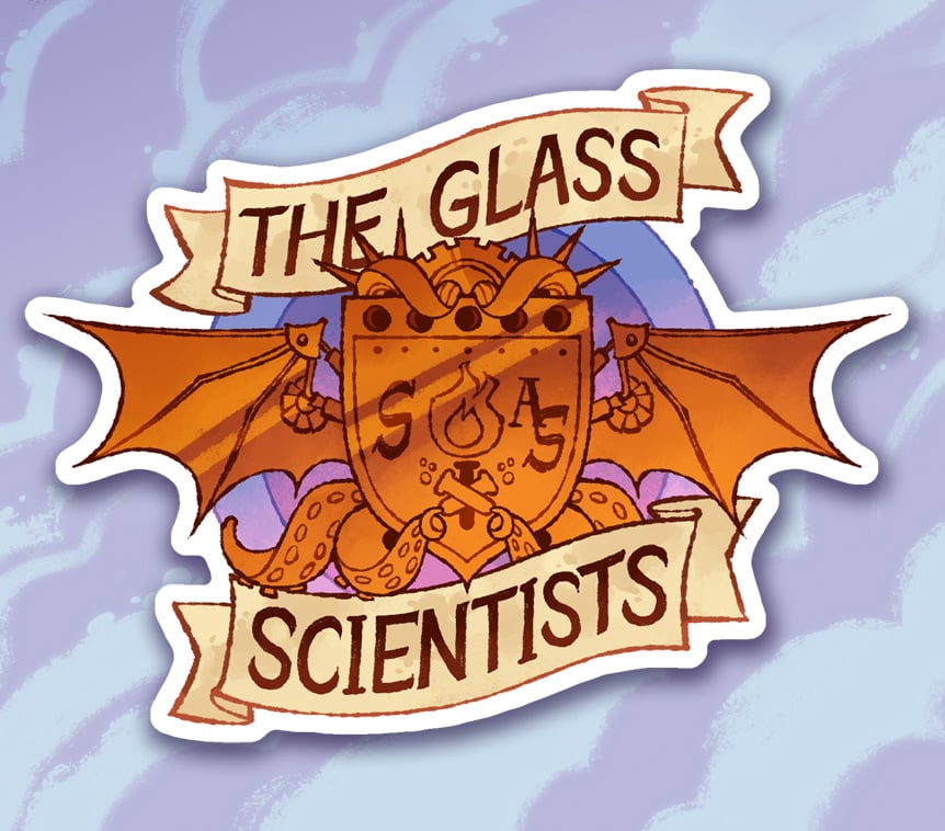 If you missed the pre-order campaign for The Glass Scientists: Volume I, you can grab your very own holographic vinyl sticker here!